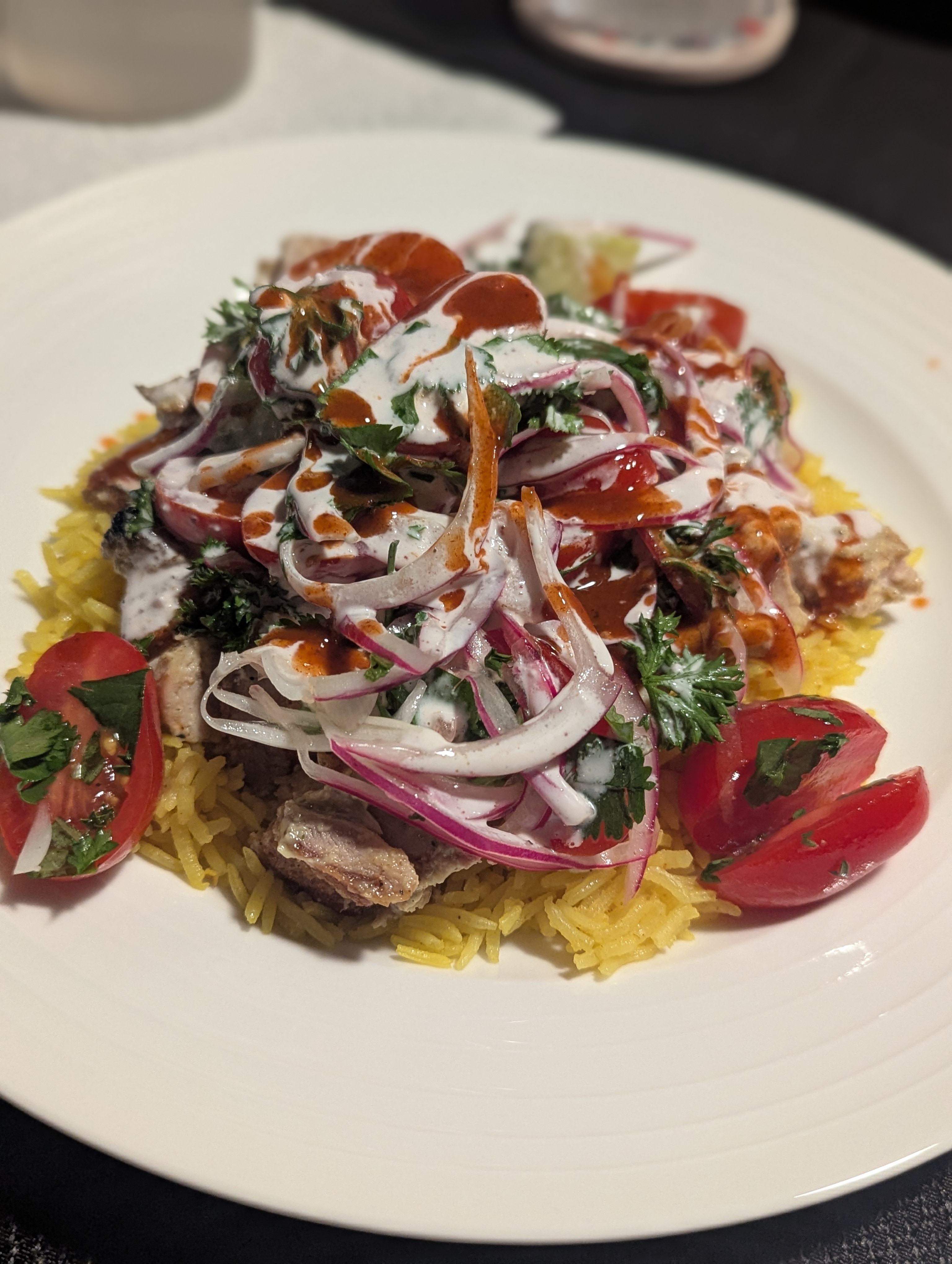 Halal Cart-Style Chicken and Rice With White Sauce